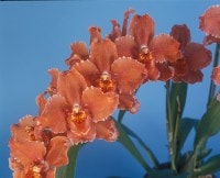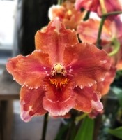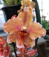 トップ > 彗星蘭 (オドントグロッサム) > 彗星蘭【オレンジサンセット】苗〜開花株 真っ赤に燃える夕映えのような味わいある渋いオレンジ色が特徴