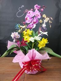 “開花したその時だけのハーモニー”を仕立てる、オーダーメイド感の強い逸品。式典・就任・開店などフォーマルギフトから、個人の記念日まで幅広く選ばれています。他では手に入らない華やかさは唯一無二のオリジナル商品。